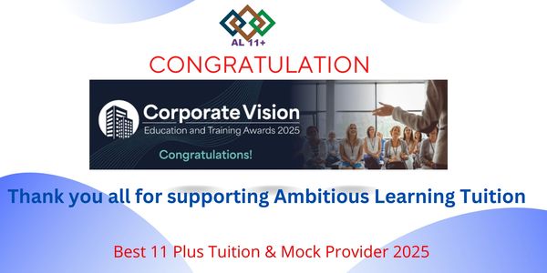 Recognised as the Best 11 Plus Tuition & Mock Provider 2025. This award highlights our commitment to academic excellence, outstanding mock exam preparation, and dedicated student support in the 11 Plus journey.